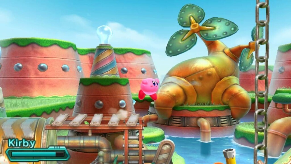 - Mechanical Marvels: As the title suggests, the game is set in a world overrun by robotic invaders, and this theme is beautifully realized throughout the game. The environments are a captivating mix of lush, natural landscapes and high-tech machinery. The contrast between Kirby’s cute and cuddly appearance and the imposing mechanical foes creates a visually engaging juxtaposition.